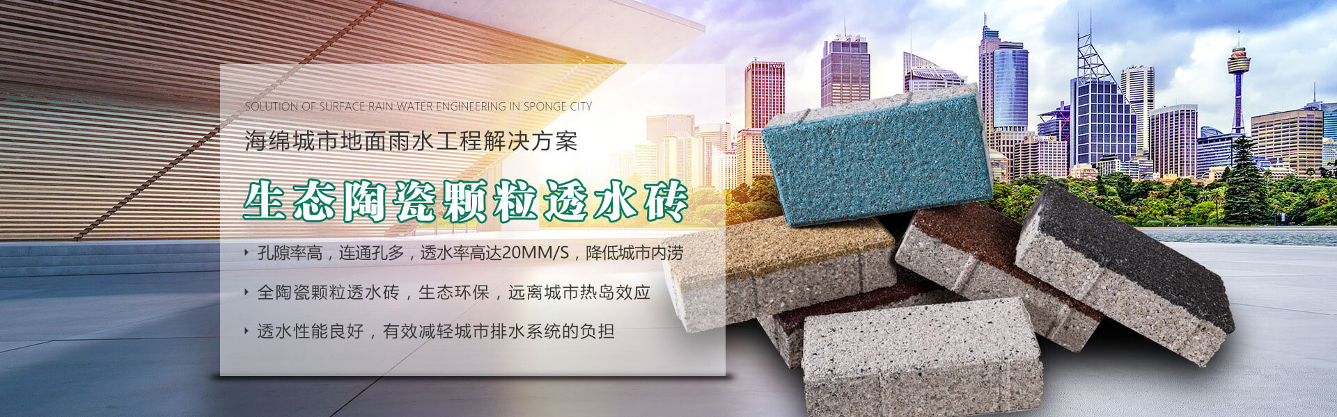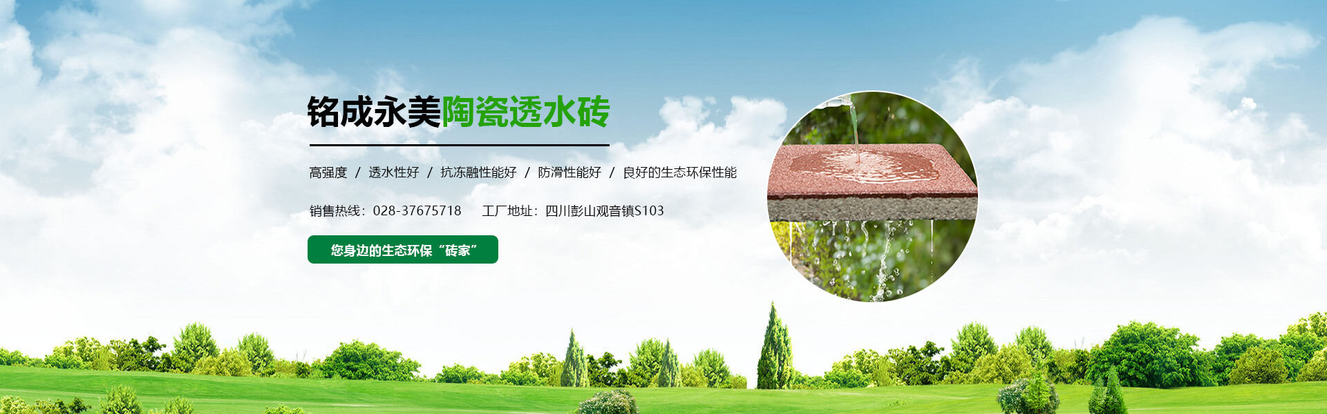 四川銘成永美環保科技有限公司(www_mcotcn_com.lyf4.com.cn)是國內非常早研究探索海綿城市的企業之一,公司主導產品:海綿城市鋪路磚家---銘成永美生態陶瓷透水磚已在全國多個重點項目使用。公司透水混凝土、雨水收集利用系統正在全國推廣。公司將整合海綿城市規劃設計、污水處理、污泥利用、環保設備、社會資本等海綿城市相關產業。為解決城市“熱島效應”、地表硬化,防止城市內澇,營造高質量的自然生態環境,改善城市生態平衡而不斷努力!公司將充分利用現有的互聯網資訊平臺,整合生態海綿城市產業鏈,打造集互聯網、科研、生產、銷售、規劃設計、PPP項目營運、工程施工為一體的綜合性環保科技公司,已初步建立覆蓋全國的業務團隊和渠道。
